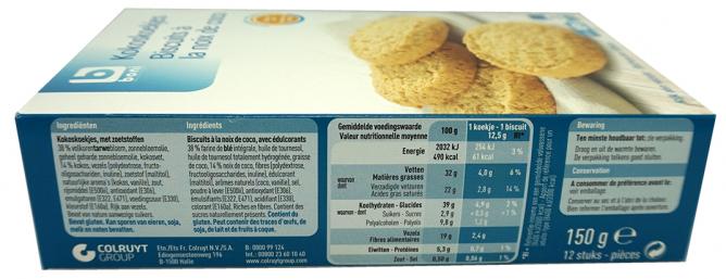 BISCUIT COOKIES NOIX COCO MALTITOL 150G
