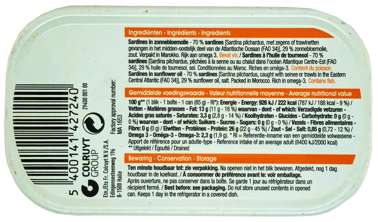 Ingrédients : Sardines (Sardina pilchardus), huile de tournesol, sel.